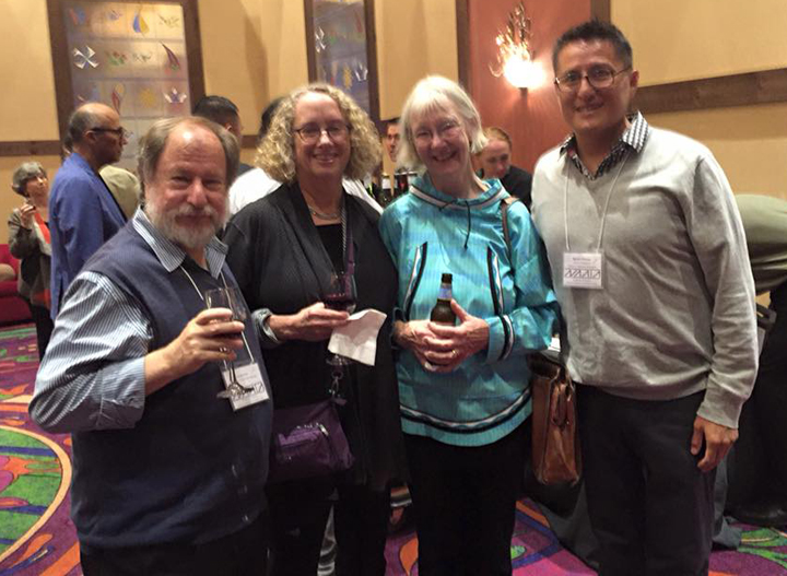 NAASA attendees including Marlowe Katoney (Navajo), far right, and David Sloan (Navajo), who produced the NAASA program cover art, back right.