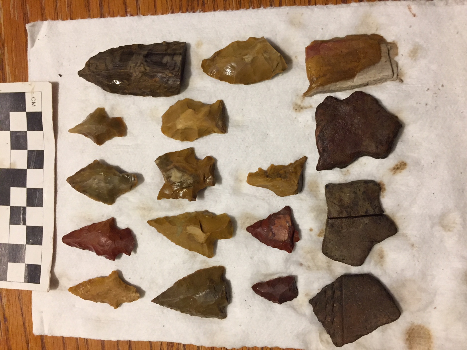 Guy had visited the site several weeks earlier to locate areas of interest, and right away, he found pottery sherds, arrowheads, pieces of stone tools, and burnt clay that indicated areas where a fire had been built thousands of years before a dam was built at Anacoco Creek to create the lake in 1963.