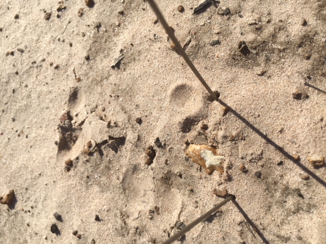 This day, Nate Mountjoy brought the Schonstedt Magnetic Locator to test the “hearth” areas that Guy had found. The locator, a long yellow pole with a small monitor near the handle, is similar to a metal detector, and its eerie hum contributed to the science fiction atmosphere of the drained lake. While two of the sites showed potential, a third had been too damaged by someone doing “donuts” in a four-wheeler – a real problem for the archaeologists who are investigating this site. Looters are also a problem, as the word is out that the lake has been drained. It is against state law to trespass or loot on the property, but that doesn’t stop people from trying.