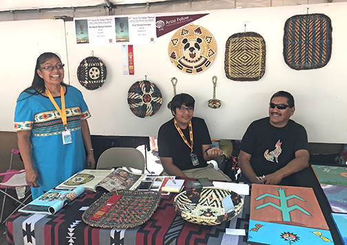 Valerie Verzuh, MIAC curator, and artist Jacob Meders (Mechoopda Maidu) volunteering for SWAIA, 2017