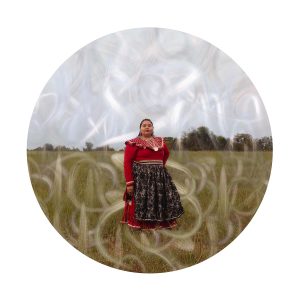 That’s what photographer Destiny J. Green (Chickasaw) sees when she looks at Southeastern Indigenous objects of cultural relevance, specifically Chickasaw gorgets. Green visually intertwines the original design elements of the objects themselves and the stories they represent. Two pieces of Green’s photography exhibit this artistic technique, Faithlyn (2024) and Aahíkki’ya Ano̱wa: Chikasha Ihoo Oksifoshi’at Okcha̱at Billi’ya’/ Aahíkki’ya Again: Chickasaw Hatchet Women Live Forever (2024).